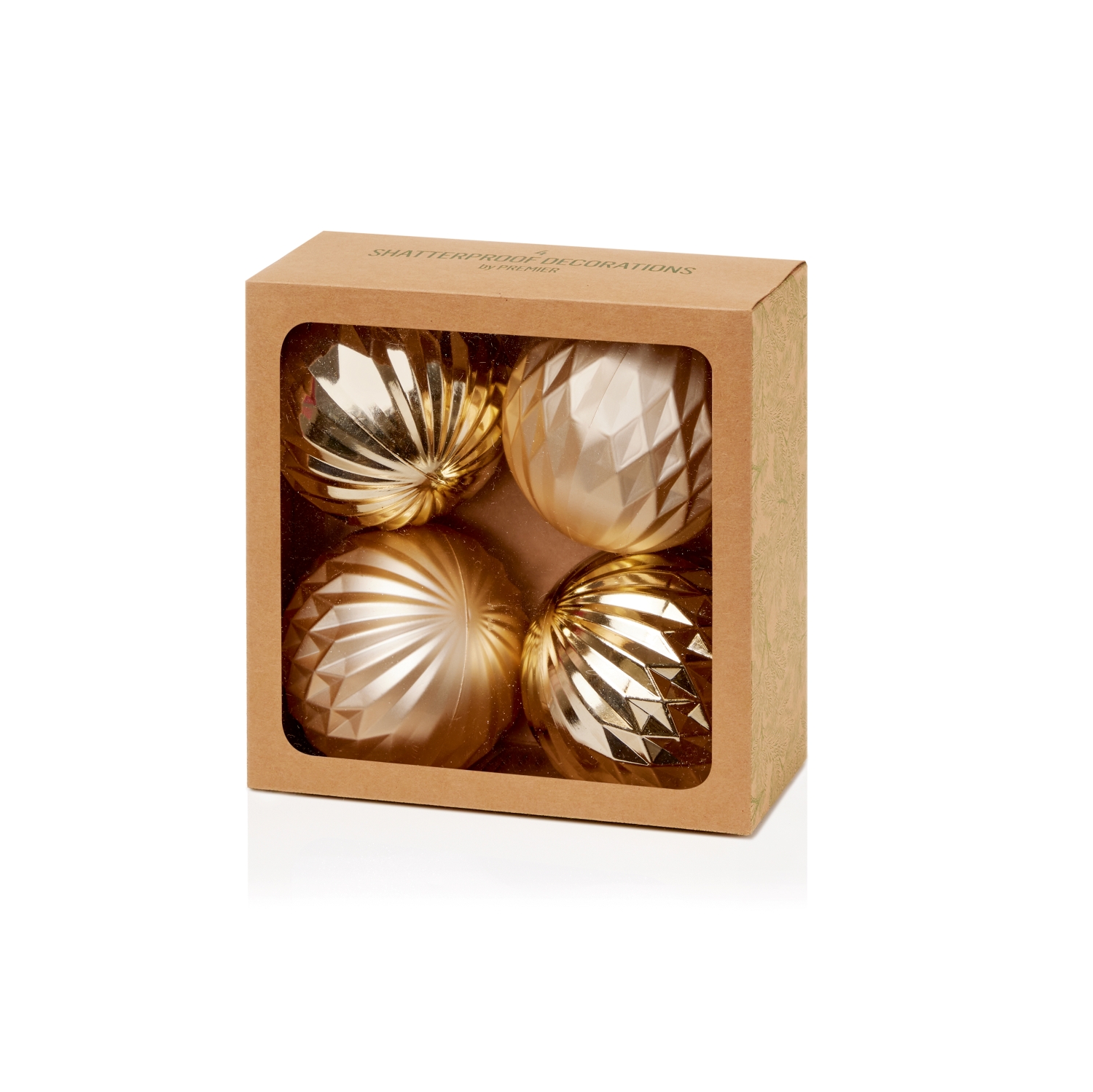 4pc Geo Design Baubles Boxed Champagne Gold 80cm