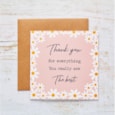 Square card made of paper in pale green color with black text, pawprint graphics, small white flowers, and comes with a brown envelope. The card text includes "You are the best dog mum ever! Woof woof thanks for all the treats and walks. Happy Mother's Day" with small hearts and bone illustrations.