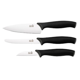 A multi-purpose set of handy knives featuring a paring knife, multi-purpose knife and a bread knife.