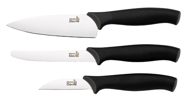 A multi-purpose set of handy knives featuring a paring knife, multi-purpose knife and a bread knife.