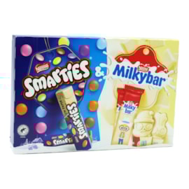 Ingredients:White Chocolate [Sugar, Cocoa Butter, Whole Milk Powder, Emulsifier (Soya Lecithin),Natural Vanilla Flavouring], Dark Chocolate [Cocoa Mass, Sugar, Cocoa Butter, Emulsifier (Soya Lecithin),Natural Vanilla Flavouring], Milk Chocolate [Sugar, Whole Milk Powder, Cocoa Butter, Cocoa Mass, Emulsifier (Soya Lecithin), Natural Vanilla Flavour], Sticky Toffee Caramel [Sugar, Glucose Syrup, Coconut Oil, Water, Sweetened Condensed Skimmed Milk (Milk, Sugar),Butter (Milk), Cocoa Butter, Cocoa Mass, Natural Flavouring, Salt, Whey Powder (Milk)], Glucose Syrup, Milk Chocolate Filling[Vegetable Oil (Palm), Sugar, Whole Milk Powder, Cocoa Butter, Milk, Fat, Cocoa Mass, Emulsifier (Soya Lecithin),Natural Vanilla Flavouring], Hazelnut Filling [Sugar, Hazelnuts, Emulsifier (Soya Lecithin), Natural Flavour], Caramelised Hazelnuts (Sugar, Hazelnuts), Water, Natural Flavouring. Dark Chocolate [Cocoa Mass, Sugar, Cocoa Butter, Emulsifier(Soya Lecithin),Natural Vanilla Flavouring], White Chocolate [Sugar, Cocoa Butter, Whole Milk Powder, Emulsifier (Soya Lecithin),Natural Vanilla Flavouring], White Chocolate Filling [Vegetable Oil (Palm),Sugar, Whole Milk Powder, Cocoa Butter, Milk Fat, Emulsifier (Soya Lecithin)Natural Vanilla Flavouring], Lemon Filling [Glucose Syrup, Sugar, Sweetened Condensed Skimmed Milk (Milk, sugar), Water, Rapeseed Oil, Stabiliser (Sorbitol), Modified Starch (Maize),Lemon Concentrate, Acidity Regulator (Citric Acid), Natural Lemon Flavouring, Emulsifier (Mono & Diglycerides of Fatty Acids) Colour (Beta Carotene)],Vegetable Oil (Rapeseed), Invert Sugar Syrup, Citric Acid, Lime Oil.This product may contain traces of Nuts and Cereals containing Gluten