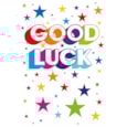 Square paper card with white background, gold and black text reading "On your Christening day," grey clouds, yellow crescent moon, stars, grey bunting, and a grey and white polka dot hot air balloon illustration, includes a brown envelope.
