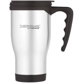 - Brilliant everyday travel mug with a sturdy screw on lid.Double wall foam insulation retains hot or cold temperaturesDuable stainless steel exteriorSlide lid, store uprightFits most vehicle cup holdersIntegrated handle for maximum portabilityThermocafe mugs are ideal for keeping drinks warm for 1-2 hoursCapacity: 400mlDimensions: 18 x 6.2cm (Height x Width)Width taken from the bottom of the mug - 13cm width with handle.