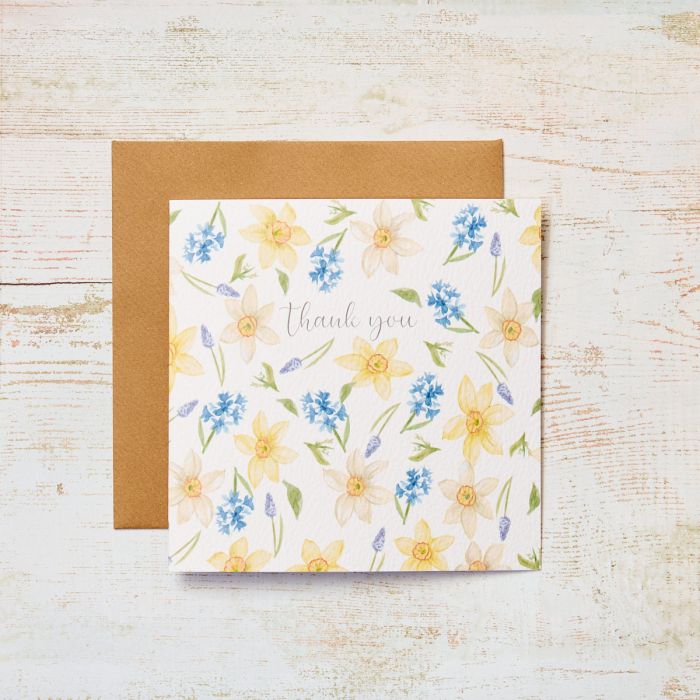 Square paper greeting card with illustration of a grey teddy bear wearing a blue bow tie, text "Welcome to the world Baby Boy" on front, includes a brown envelope.