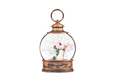 Celebrate the magic of Christmas with this beautiful snow swirling lantern!Snow swirling lantern with warm white lightBlack and copper brush effect finish3 x AA batteries (not included)Auto Timer Function 6hrs on/18hrs offIndoor use only28 x 17.5 x 9 cm