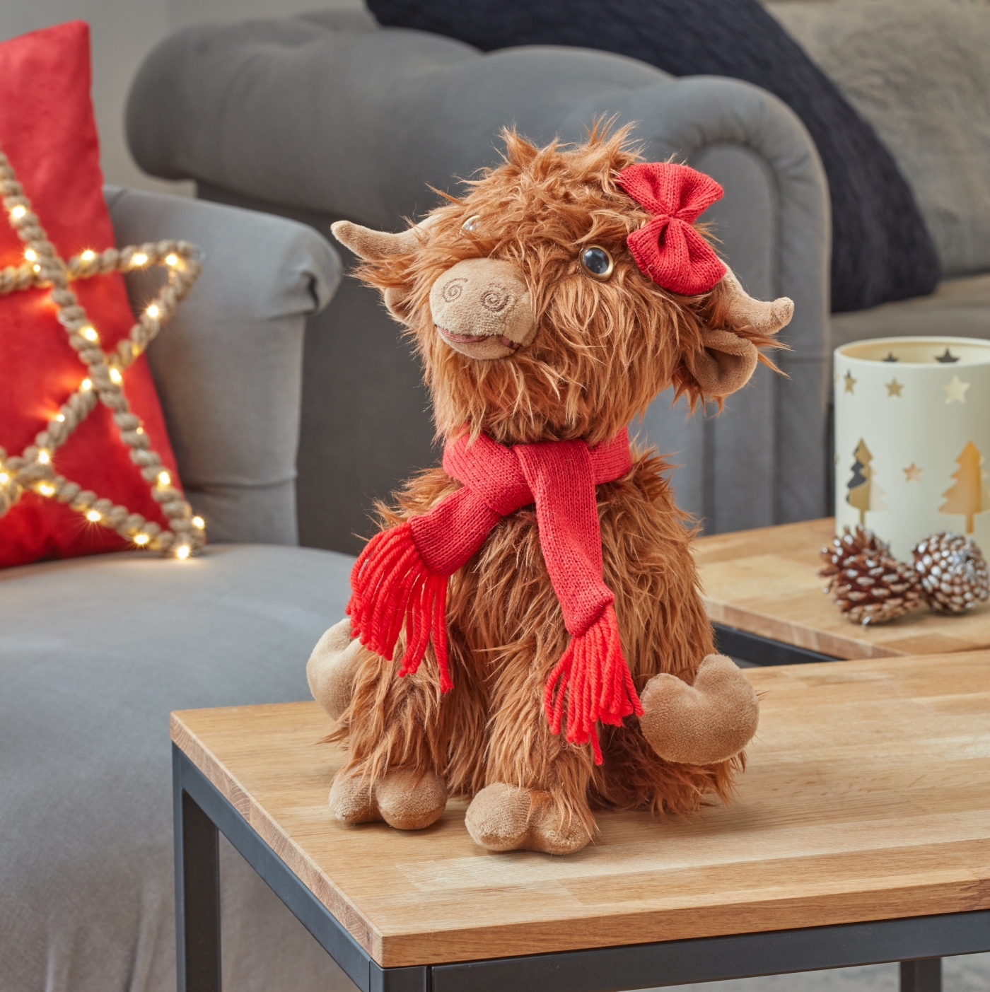 Bring a touch of Scottish charm to your festive season with our delightful plush Christmas Highland Cow! With its soft, fluffy coat and festive flair, it's sure to steal hearts this Christmas.