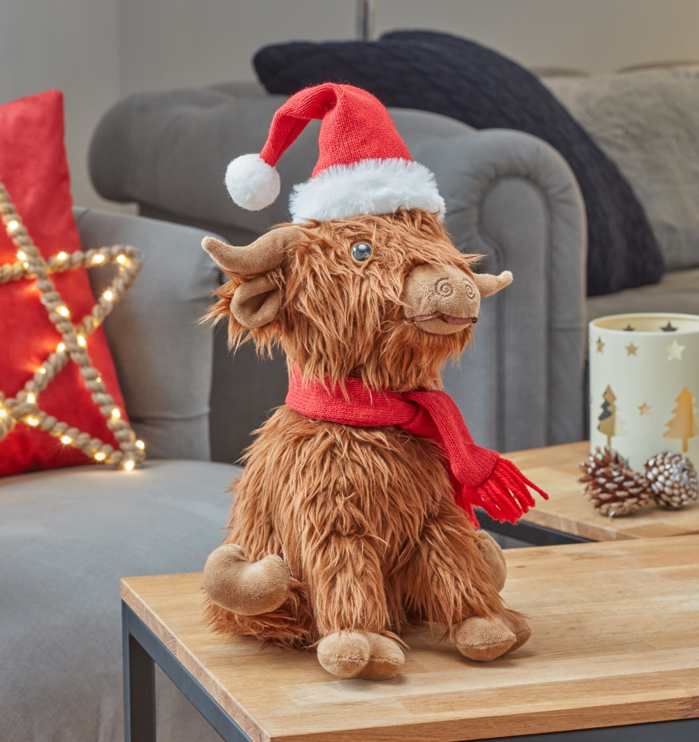 Bring a touch of Scottish charm to your festive season with our delightful plush Christmas Highland Cow! With its soft, fluffy coat and festive flair, it's sure to steal hearts this Christmas.Lovably soft and cuddly plush materialHeight:28cm