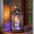 Traditional styled lantern with firefly light effectBlack with copper brush50 LED warm white copper wire string lightsAuto timer function 4 hours on/20 hours off)2 x AA battery (not included)Height:31cm