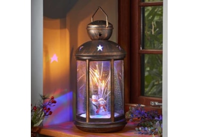 Celebrate the magic of Christmas with this beautiful snow swirling lantern!Snow swirling lantern with warm white lightBlack and copper brush effect finish3 x AA batteries (not included)Auto Timer Function 6hrs on/18hrs offIndoor use only28 x 17.5 x 9 cm