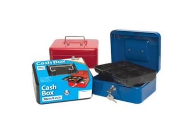 Cash Boxes 15cm/6inch Cash BoxAssorted Colours2 keysMetal handle Removable 6 compartment tray