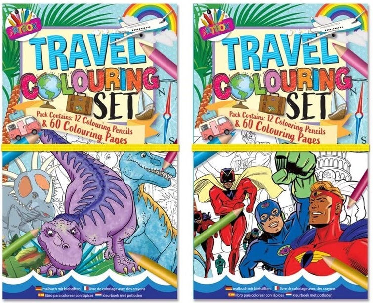This great set comes with two 30 page booklets full of pages to colour in. Perfect to keep young ones occupied while on the move and when you arrive!