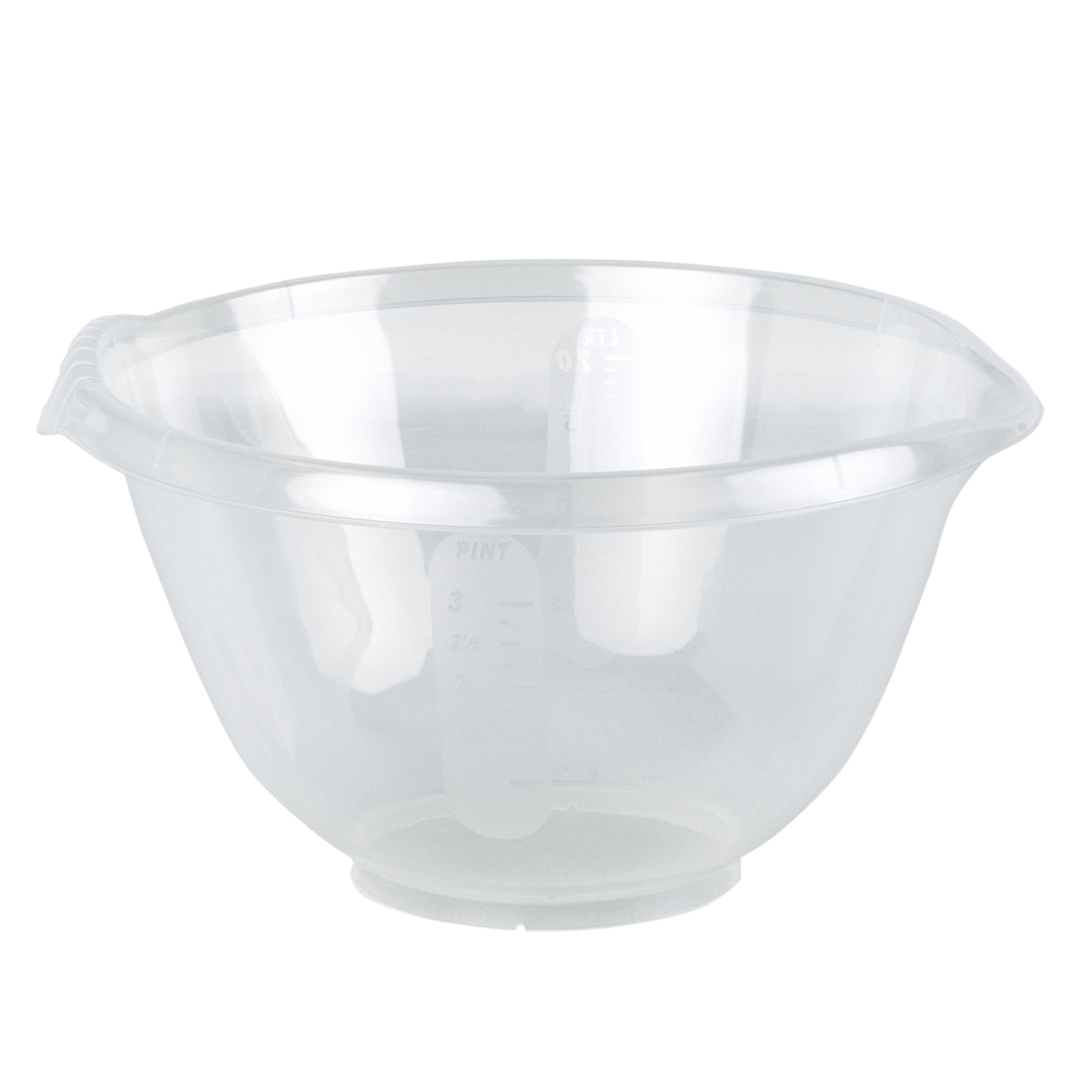2litre small round mixing bowl with handle and easy pour spout. Graduated side measurements in pints and litres. Dishwasher, freezer and microwave safe and BPA free. Durable and easy to clean.