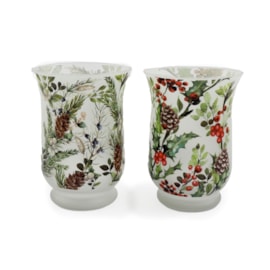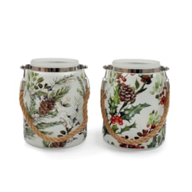 Snowy winter candle holder complete with pine cones, red berries and decorative starsFeatures inbuilt cups perfect for adding LED candles, string lights and moreGreat for decorating dining tables, mantlepieces and windowsillsFor outdoor and indoor use15cm