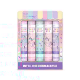 The candy lip gloss set every girl is dreaming off, contains a trio of 8ml lip glossPlayful scents that capture the magical sweetness of a fairytalePerfect stocking fillerRecyclable cardboard packagingSuitable for Vegans