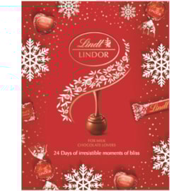 Ingredients:Milk chocolate ReindeerIngredients: sugar, cocoa butter, whole MILK powder, cocoa mass, LACTOSE, skimmed MILK powder, emulsifier (SOYA lecithin), BARLEY malt extract, flavouring.Milk chocolate contains: Cocoa solids: 30% minimum, Milk solids: 14% minimumMilk chocolate SantaIngredients: sugar, cocoa butter, whole MILK powder, cocoa mass, LACTOSE, skimmed MILK powder, emulsifier (SOYA lecithin), BARLEY malt extract, flavouring.Milk chocolate contains: Cocoa solids: 30% minimum, Milk solids: 14% minimumSwiss Milk chocolate NapolitainsIngredients: sugar, cocoa butter, whole MILK powder, cocoa mass, LACTOSE, skimmed MILK powder, emulsifier (SOYA lecithin), BARLEY malt extract, flavourings.Milk chocolate contains: Cocoa solids: 31% minimum, Milk solids: 20% minimumMilk Chocolate SnowdropsMilk chocolate with a creamy double milk filling (47%)Ingredients: sugar, cocoa butter, whole MILK powder (18%), anhydrous MILK fat (10%), cocoa mass, LACTOSE, skim MILK powder (3%), emulsifier (SOYA lecithin), BARLEY malt extract, flavourings.Milk chocolate contains: Cocoa solids: 30% minimum, milk solids: 14% minimumLindor Mini TrufflesMilk chocolate truffles with a smooth melting fillingIngredients: sugar, vegetable fat (coconut, palm kernel), cocoa butter, whole MILK powder, cocoa mass, LACTOSE, skimmed MILK powder, anhydrous MILK fat, emulsifier (SOYA lecithin), BARLEY malt extract, flavourings.Milk chocolate contains: Cocoa solids: 30% minimum, Milk solids: 14% minimum