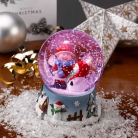 Swirling snow, music and lights combing to create this sweet Christmas scene!Flashing colour changing LED water ballSnowstorm functionMusical- plays 8 Christmas songsBattery poweredHeight:14cm