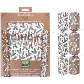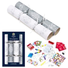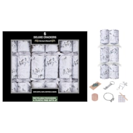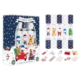 Pack of 6Cracker length 12"Approximate pack measurements 26cm x 19.5cm x 1cmPrinted with a snowman designContents include 6 crackers with snaps attached, white raffia ties, hats and mottos with space for personalisationRecyclable crackers and packaging