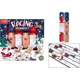 Box of 6Cracker length 12"Approximate box measurements 31cm x 5.4cm x 30cmCracker contents hat, motto, snap and racing ReindeerBox contents racetrack and winner’s trophyRecyclable crackers and packaging