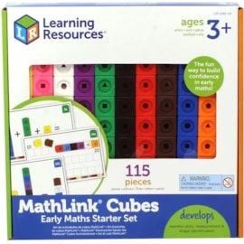This maths mastery resource for children ages 3 and up helps preschoolers build a range of maths skills through hands-on learning.As preschoolers click together and twist apart MathLink Cubes and follow the activities included in this maths mastery set, they build a range of essential early years maths skills including counting, patterning and sequencing, grouping and sorting, early arithmetic, measurement, ordering, and more.The 15 double-sided colourful Activity Cards feature 30 activities that progress as children master new maths skills.When the learning fun is done, MathLink Cubes double as fun building toys that help children build fine motor skills.This set includes 100 MathLink cubes in 10 colours (orange, red, yellow, blue, green, purple, pink, white, black, and brown) 15 double-sided activity cards, and a multilingual Activity Guide. Cubes measure 2cm x 2cm. The cubes and activity cards store in the reusable packaging.