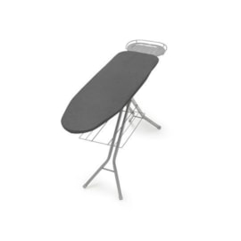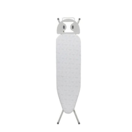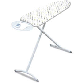 The compact board has a 100% cotton cover with foam underlay and steel mesh for efficient steam ironing. 4 height positions from 73cm up to 88cm with locking leg safety catch. Universal heat resistant iron rest to place your ironing on.w970mm*d350mmironing surface