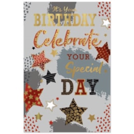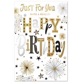 Square paper greeting card with an illustration of a green Land Rover vehicle and a black and white collie dog, "Happy Birthday" text on the front, accompanied by a brown envelope.