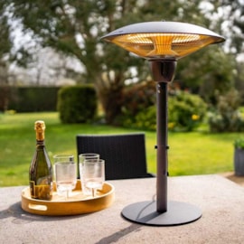 Stay warm with this stylish outdoor 2000kw standing heater. Perfect for alfresco dining and entertaining. Quartz infrared heating element - up to 1500 hour life span. Choice of 3 heat settings 650kw, 1300kw and 2000kw, with adjustable height and head angle. Features automatic tilt safety cut out switch. 5m cable. Easy self-assembly. Full instructions included. Assembled dimensions: H200cm x W50cm x D47cm.*All measurements are approximate.