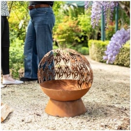 Keep the cold at bay with this statement piece fireglobe. Stunning hand welded flame design casts captivating dancing patterns. Striking centre piece for any outside space. Hard wearing oxidised steel. Integrated fuel grate increases airflow, keeping flames burning for longer. For use with untreated wood, small dry logs or wood briquettes. Quick and easy self-assembly. Full instructions included.Assembled dimensions: H61cm x W46cm x D46cm.*All measurements are approximate.