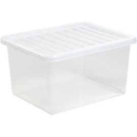 High quality large 80 litre storage box with clip on lid. Versatile storage suitable for all around the home and workplace.Dimensions: 60.00 x 40.00 x 42.00 cmWeight: 1.9219 kg